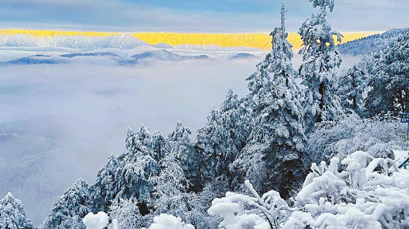 春节期间的雅安王岗坪景区,在雾凇映衬下,贡嘎群山尽收眼底,冰雪游迎来客流高峰。 王岗坪景区供图