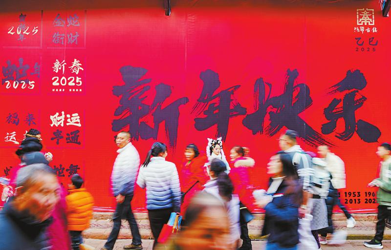 1月29日,“最美年味”2025新春庙会在富顺县文庙前广场举行,人们在逛庙会中感受浓浓的年味。