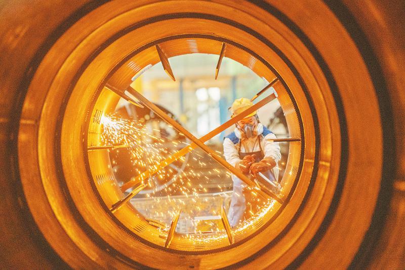 2月5日,位于四川天府新区眉山片区的中建钢构(四川)有限公司加工车间内,工人正在赶制订单产品。翁光建 摄(C视觉)