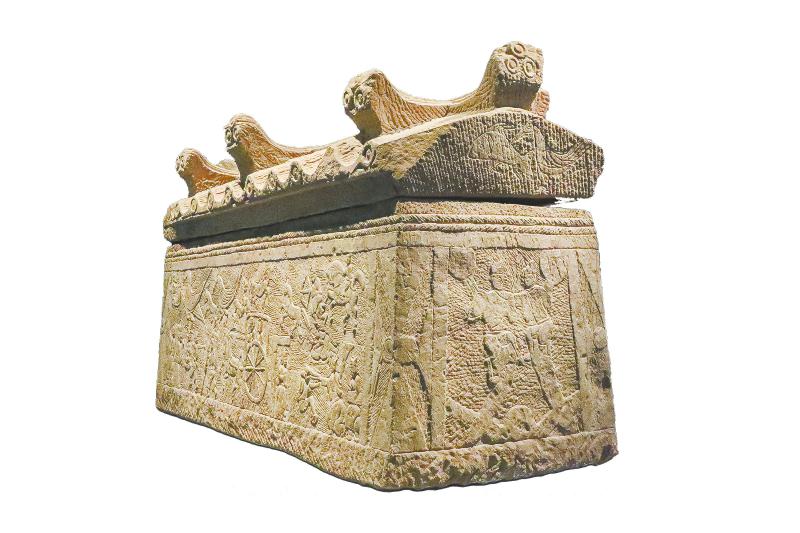 东汉斑竹林画像石棺上的伏羲女娲交尾图(宜宾市博物院)。