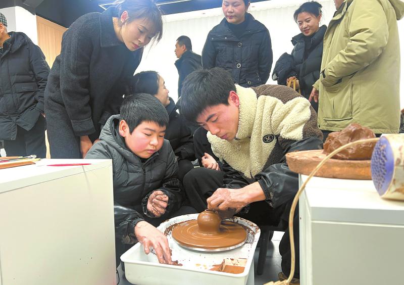 消费者正在体验土陶制作。四川日报全媒体记者 郝飞 摄