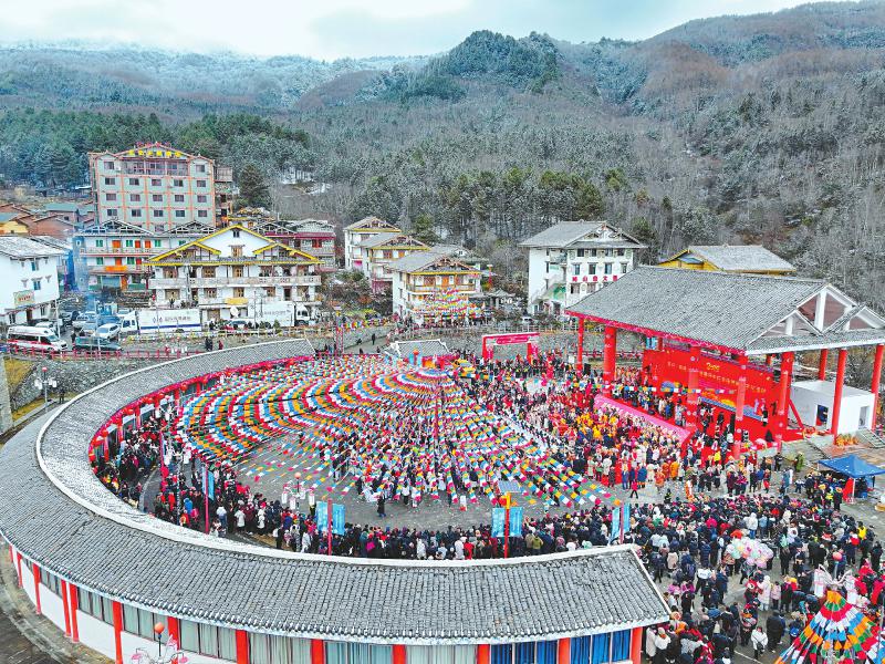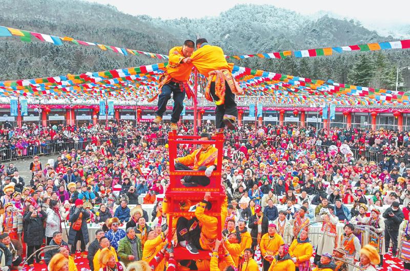 2月6日,2025年宝兴·硗碛上九节暨藏历木蛇年传统民俗文化活动在宝兴县硗碛藏族乡举行。硗碛“上九节”是当地藏族群众祈福新年、感恩自然、传递吉祥的重要节日,其中的“天鹅抱蛋”、多声部民歌等民俗都是非物质文化遗产代表性项目。 雅安观察 黄刚 摄