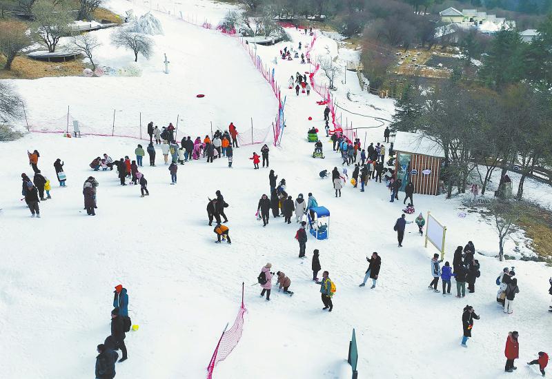 春节假期,平武县推出30余项更加个性化、更具体验感的春节文旅活动,多元业态融合共生激发消费潜力。图为游客在王朗国家级自然保护区体验冰雪项目。 平武县委宣传部供图