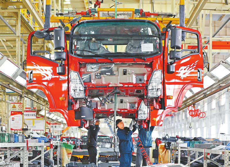 2月10日,在成都市青白江区重汽成商生产线上,工人正在装配商用汽车,赶制订单。今年初,该公司出口订单持续增长,产品畅销东南亚、非洲等地。白桂斌 摄(C视觉)