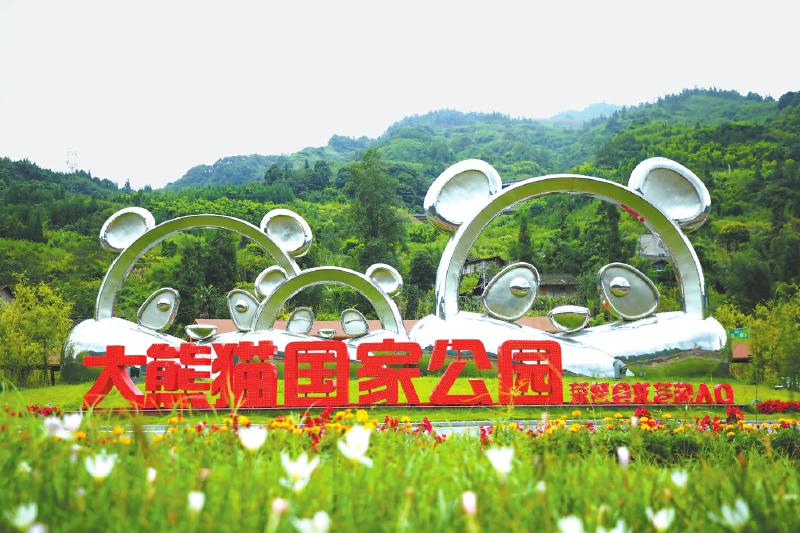 大熊猫国家公园荥经县龙苍沟入口社区雕塑。