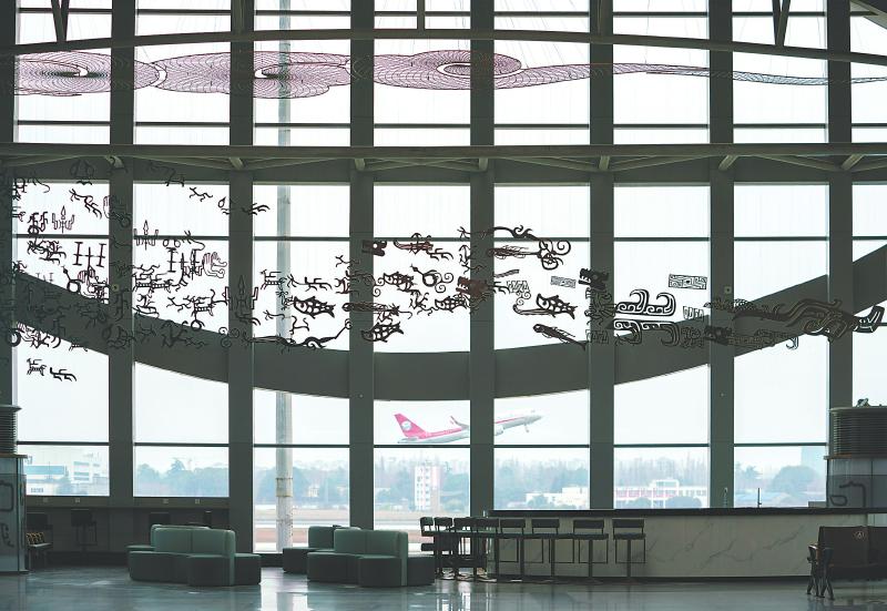 二月二十四日,提质改造后的成都双流国际机场一号航站楼将正式投入使用。这是二月十九日拍摄的位于C指廊的“古蜀文明”艺术装置,融合了三星堆、金沙遗址的祥云和纹饰元素等。刘婷摄(C视觉)