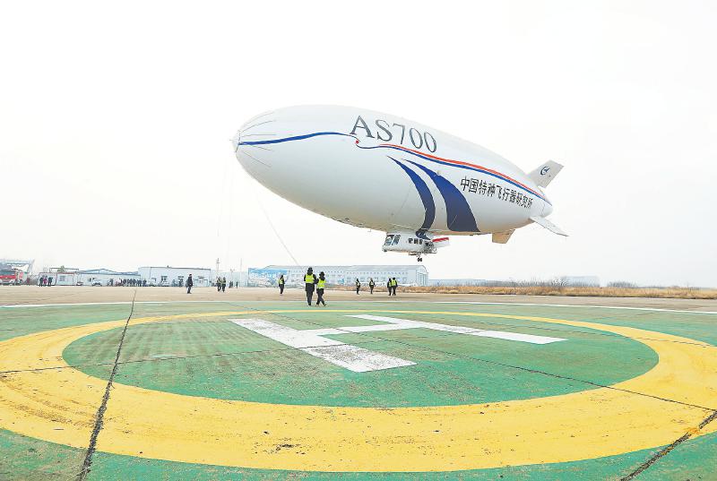 这是2月21日拍摄的国产电动型飞艇AS700D。据中国航空工业集团特种飞行器研究所消息,2月21日,国产载人飞艇“祥云”AS700电动型AS700D在湖北荆门成功完成科研首飞,验证了技术成熟度和原理,为后续电动飞艇的研制及应用进行技术储备。 新华社发(中国航空工业集团特种飞行器研究所供图)
