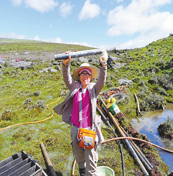 手拿岩芯的付小方。 本版图片均由受访者提供