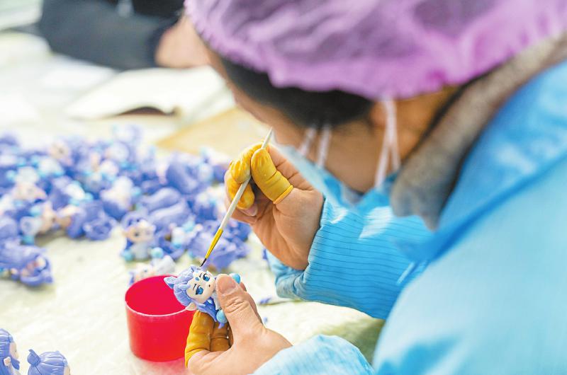 工人正在生产“哪吒”系列周边玩具。 新华社记者 陈思汗 摄