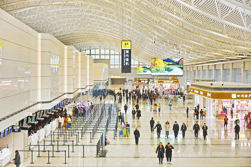2月24日,提质改造后的成都双流国际机场T1航站楼恢复运行。 罗江涛 摄(C视觉)