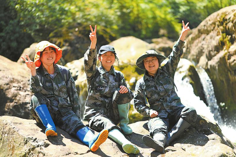 巡山间隙,刘景怡(左)、张冬玲(中)、付明霞(右)合影留念。