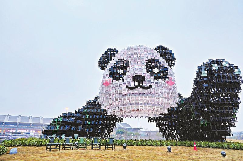 成都双流国际机场T1航站楼外的大熊猫造型。