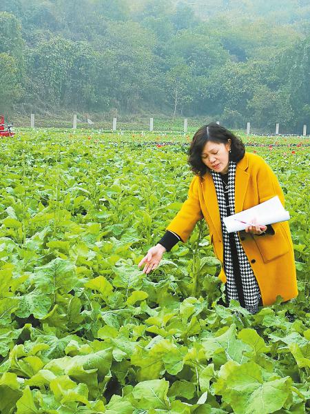 李浩杰在田间记录油菜生长数据。