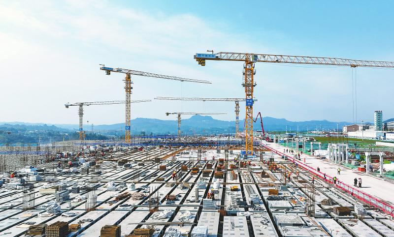 2月26日,在泸州市江阳区黄舣镇,智能酿造技改项目工地塔吊林立,上千名工人在抓紧施工。人勤春来早,开年即开跑。泸州市全力推进重大项目建设,抢工期、赶进度、保质量,力促项目加快建设,为完成全年目标任务奠定坚实基础。 刘学懿 摄(C视觉)