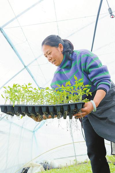 2月23日,位于德阳市旌阳区的四川省农业科学院现代农业科技成果转化示范基地大棚里,工人正在对培育的西红柿春苗进行拼盘。该基地培育的蔬菜、玉米等春苗共计200万株,将于近日陆续起苗并进行移栽。