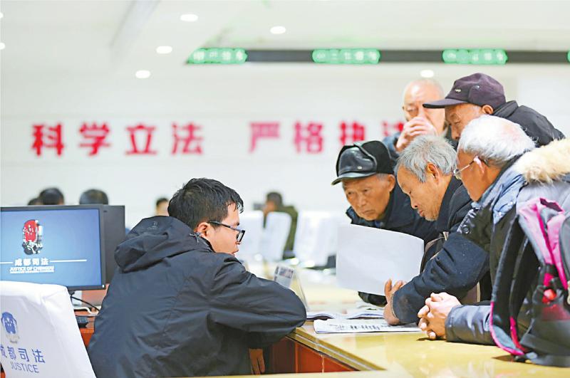 成都市公共法律服务中心为老年人提供法律咨询服务。 本版图片均由司法厅提供