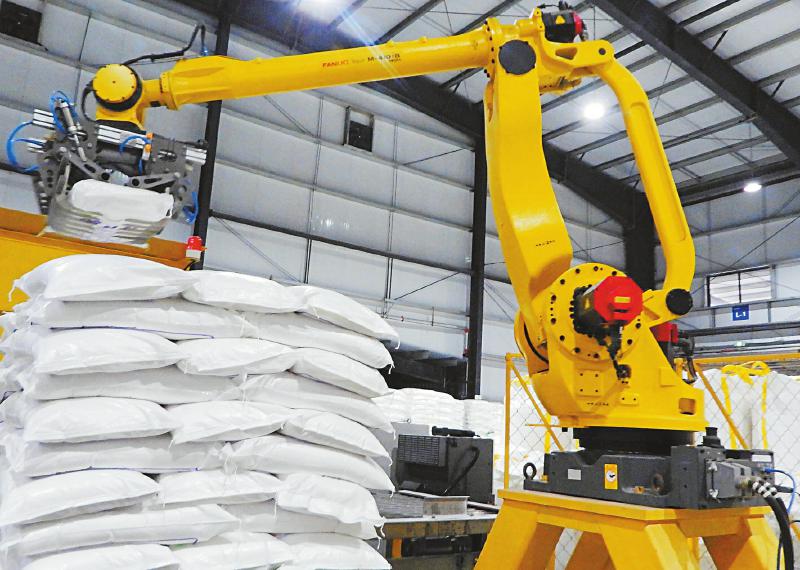 2月9日,在达州高新区瓮福达州化工有限责任公司生产车间,机器人正在进行化肥码垛作业。