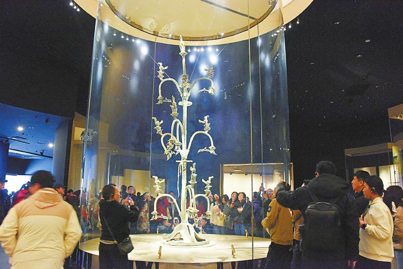 蛇年春节假期,三星堆博物馆二号展厅,游客在围观青铜神树。寇元林 摄(C视觉)