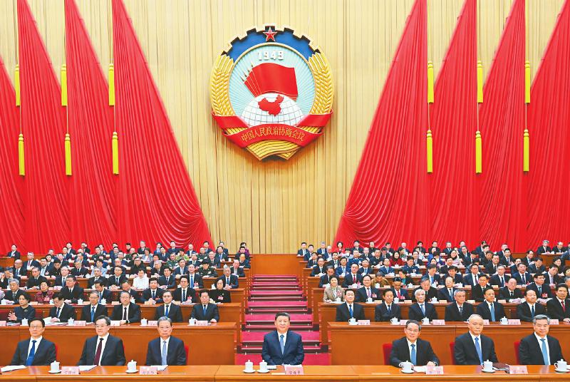 3月4日下午,中国人民政治协商会议第十四届全国委员会第三次会议在北京人民大会堂开幕。 新华社记者 饶爱民 摄