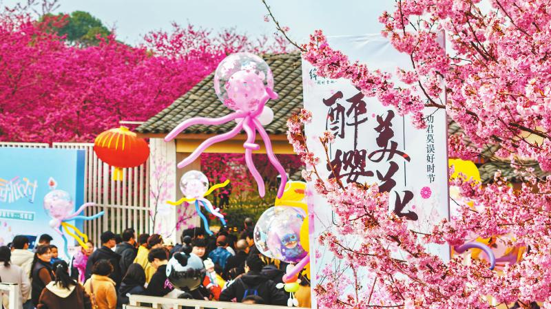 3月1日,成都市新都区绛樱院的樱花绚烂绽放,不少市民来此赏花游玩,赴一场春天的约会。 顾志平 摄(C视觉)