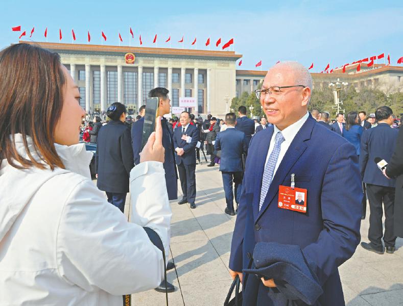 3月5日,全国人大代表吴德在人民大会堂外接受记者采访。川报集团特派记者 欧阳杰 摄