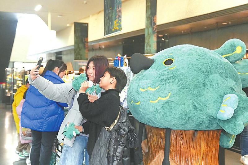 游客在三星堆博物馆文创区打卡合影。
