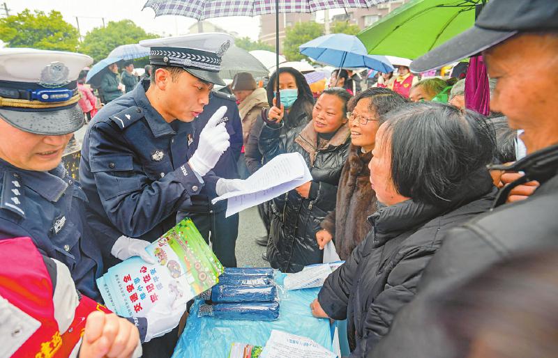 3月5日,四川天府新区眉山片区“3·5”学雷锋志愿服务活动在青龙街道邻里中心开展,交警在为群众普及交通知识。翁光建 摄(C视觉)