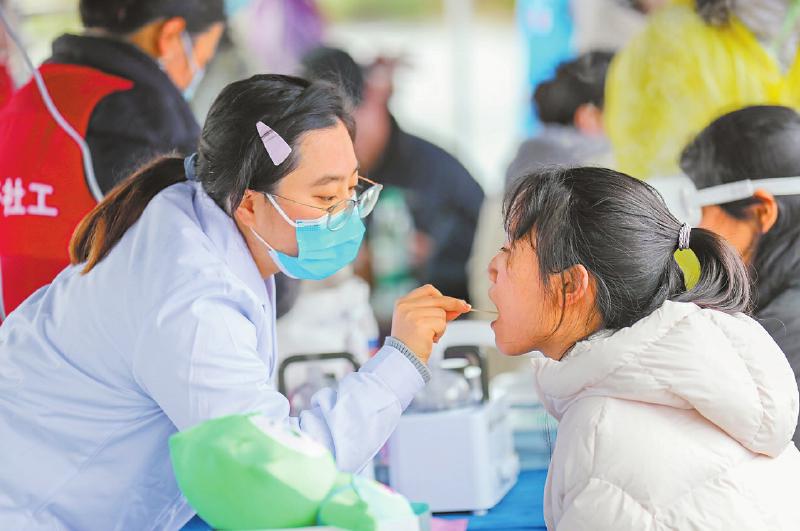 3月5日,在宜宾市叙州区长江音悦街,医务人员正为市民进行爱心义诊。 庄歌尔 摄(C视觉)