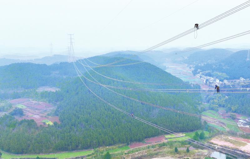 国网四川超高压公司员工对500千伏输电线路改造工程进行竣工验收。 阳金树 摄