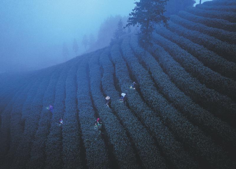 3月13日清晨,泸州市纳溪区打古镇普照村的茶山上云雾缭绕。