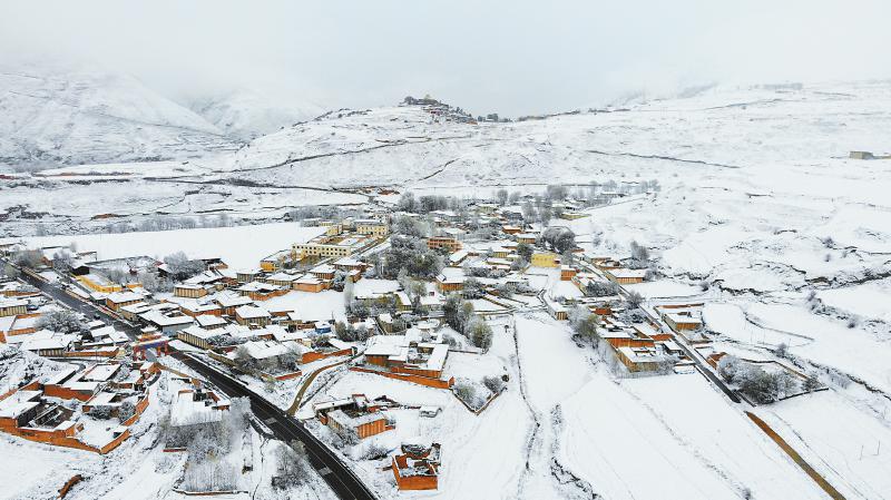 近日,受强冷空气影响,甘孜县迎来大范围降雪。春雪铺展在大地上,为初春增添了一抹别样的韵味。 赖红 摄