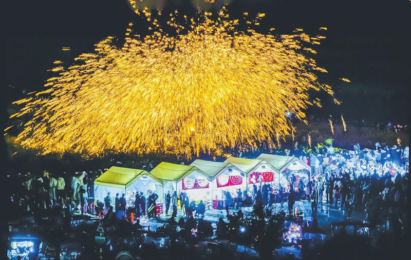 三月十五日晚,成都崇州市五星村的消费场景再焕新,一场铁花秀在花香四溢的油菜花田上演,吸引了众多留宿在此的游客围观。杨武摄(C视觉)