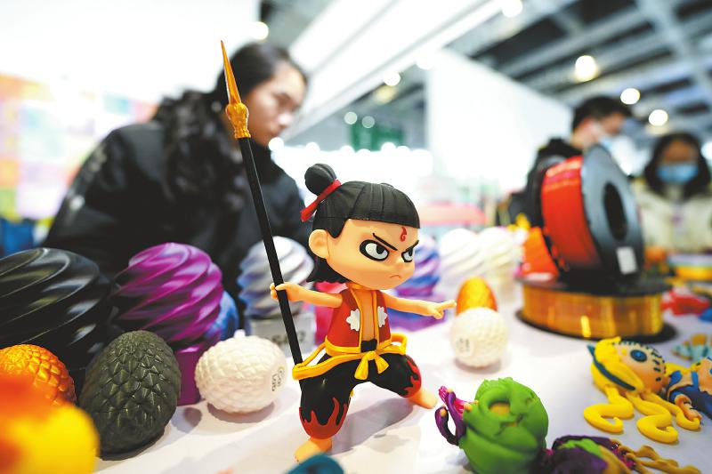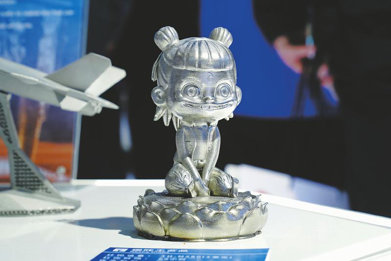 3月17日,第十一届亚洲3D打印、增材制造展览会在国家会展中心(上海)开幕。本届展会为期3天,展览面积超过40000平方米。图为展览会上展示的3D打印的哪吒工艺品。 新华社记者 张建松 摄