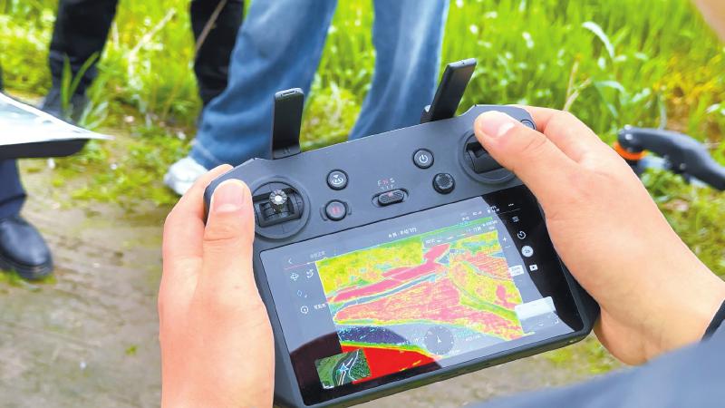 技术人员操作农事光谱无人机,为农田“做CT”。 白川东 摄
