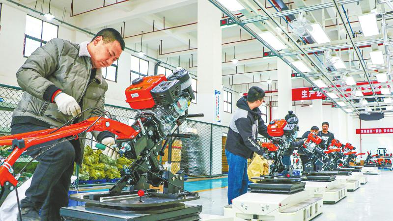 图为四川巴山方润农用机械制造有限公司的生产车间,工人正在生产微耕机。 张书浩 摄