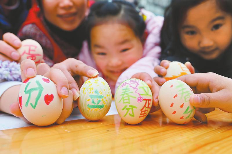 3月19日,绵阳市涪城区小绵羊幼儿园开展“立蛋迎春分”主题民俗活动。 陈冬冬 摄(C视觉)