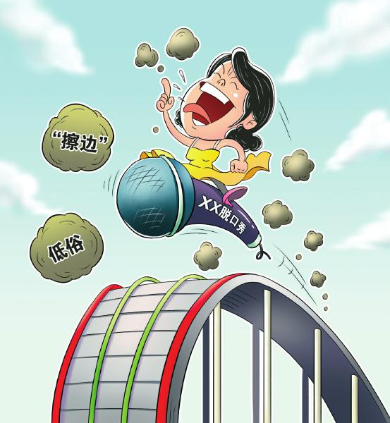 近日,脱口秀表演的边界问题引发社会广泛讨论。有网友反映,部分线下脱口秀演出存在“擦边”现象,内容低俗,甚至挑战公众道德底线,应引起重视。 王琪 图