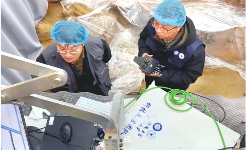 胡旻(右)在兵马俑坑道里用太赫兹时域光谱系统分析文物。 受访者供图