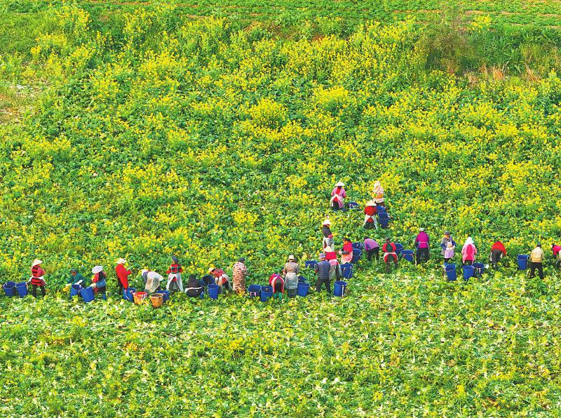 3月21日,在成都崇州市怀远镇黎店村,村民抢抓晴好天气喜收儿菜,同时开启施肥,为下一轮蔬菜播种做好准备,用劳动绘就春天的美丽画卷。 朱志宏 摄(C视觉)