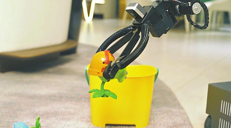 在收拾玩具的“贡嘎一号”人形机器人。