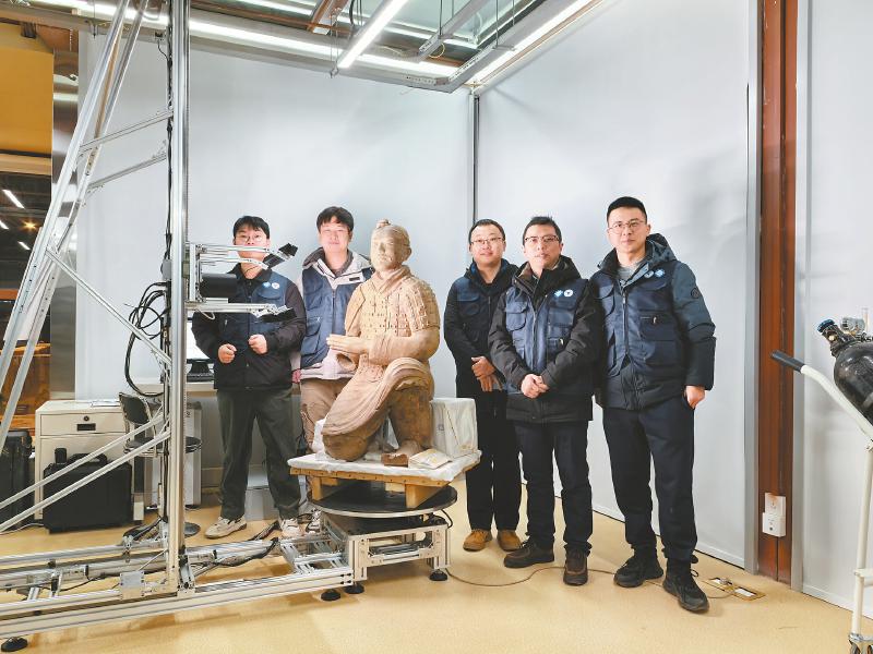 团队用太赫兹时域光谱系统分析兵马俑。 受访者供图