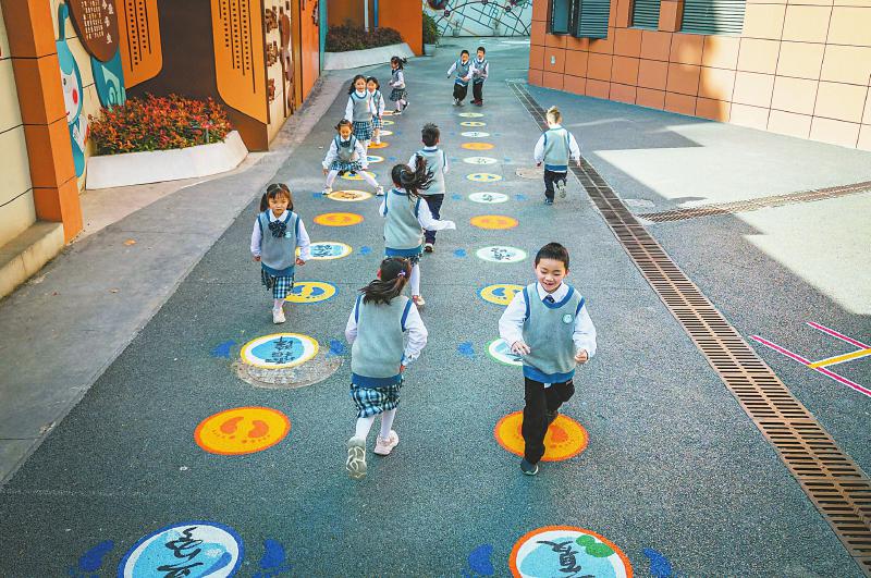 3月25日,在遂宁高新区物流港实验小学,学生在课间进行跳绳、足球、体操、舞龙等户外活动。 吴奉家 摄(C视觉)
