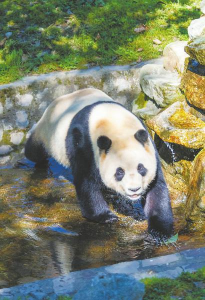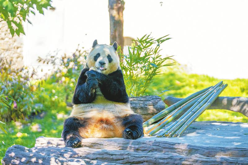 进食 3月25日上午9时许,大熊猫“福宝”在中国大熊猫保护研究中心卧龙神树坪基地幼儿园2号馆和游客见面。 四川日报全媒体记者 卢春阳 摄