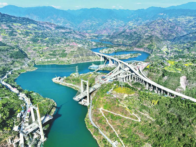 在宜宾市屏山县新市镇,G4216线宜攀高速宜金段杨柳坝互通工程加快建设。兰锋 摄(C视觉)