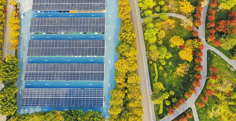 3月27日,遂宁市环岛商务中心建成西南地区首个“光储充享”一体化示范项目(光伏发电+储能+充电桩+共享停车场)试运行。该项目总投资2000万元,具备绿色低碳、智能调峰、共享共赢等六大亮点,旨在打造川渝一流低碳示范停车场,探索机关办公区低碳转型新模式。 钟敏 摄(C视觉)