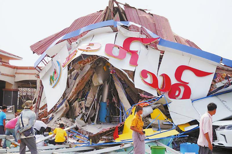 缅甸 这是3月28日在缅甸内比都拍摄的地震后受损的建筑。 新华社发