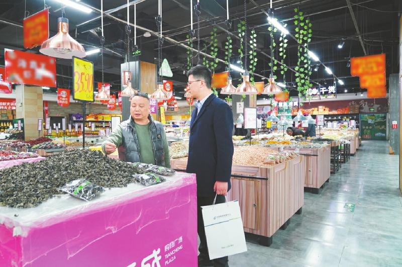 邮储银行客户经理在内江恬成购物广场了解经营情况。