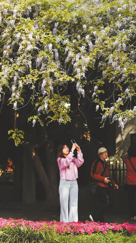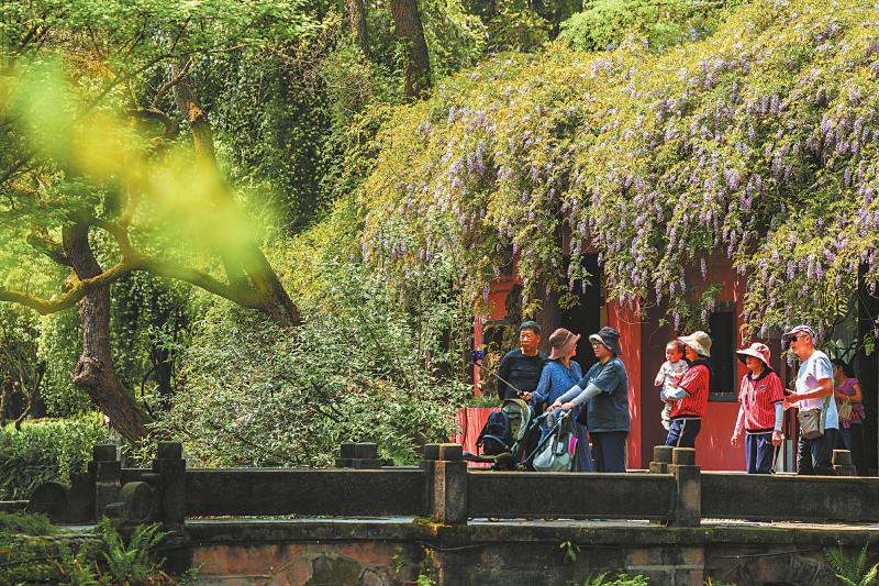 近日,成都市新都区升庵桂湖的紫藤迎来盛花期,吸引了众多市民和游客前来打卡。据了解,升庵桂湖的紫藤距今已有500多年历史,相传为明代状元杨升庵亲手栽种,被誉为“中国藤王”。 李佳 包瑞雪 摄(C视觉)