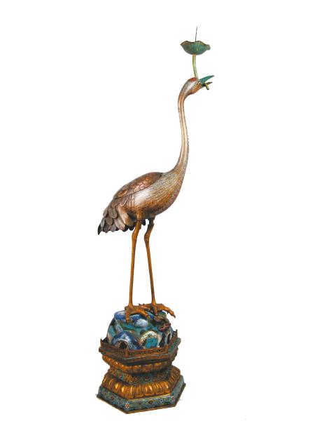 掐丝珐琅鹤式蜡台(沈阳故宫博物院藏)。本文图片由成都武侯祠博物馆提供