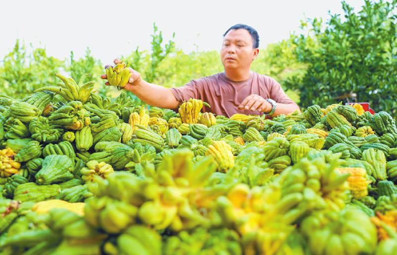 种植户正在分拣刚采摘的佛手。邱海鹰 摄(C视觉)